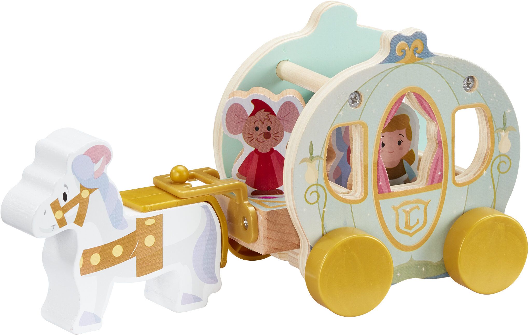 DISNEY PRINCESS WOODEN CINDERELLA’S PUMPKIN CARRIAGE Beautiful Preschool Wooden Toy, Imaginative Play, FSC Certified Sustainable, Gift For 2-5 Year Old & Character Uk Wooden Princess 4-Figure Set