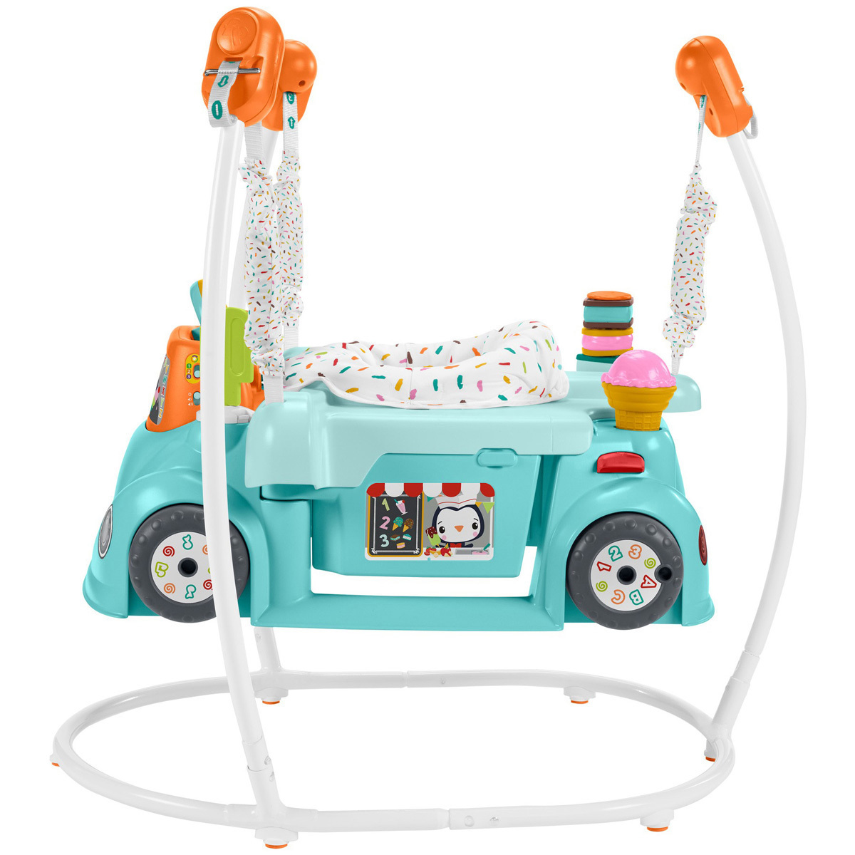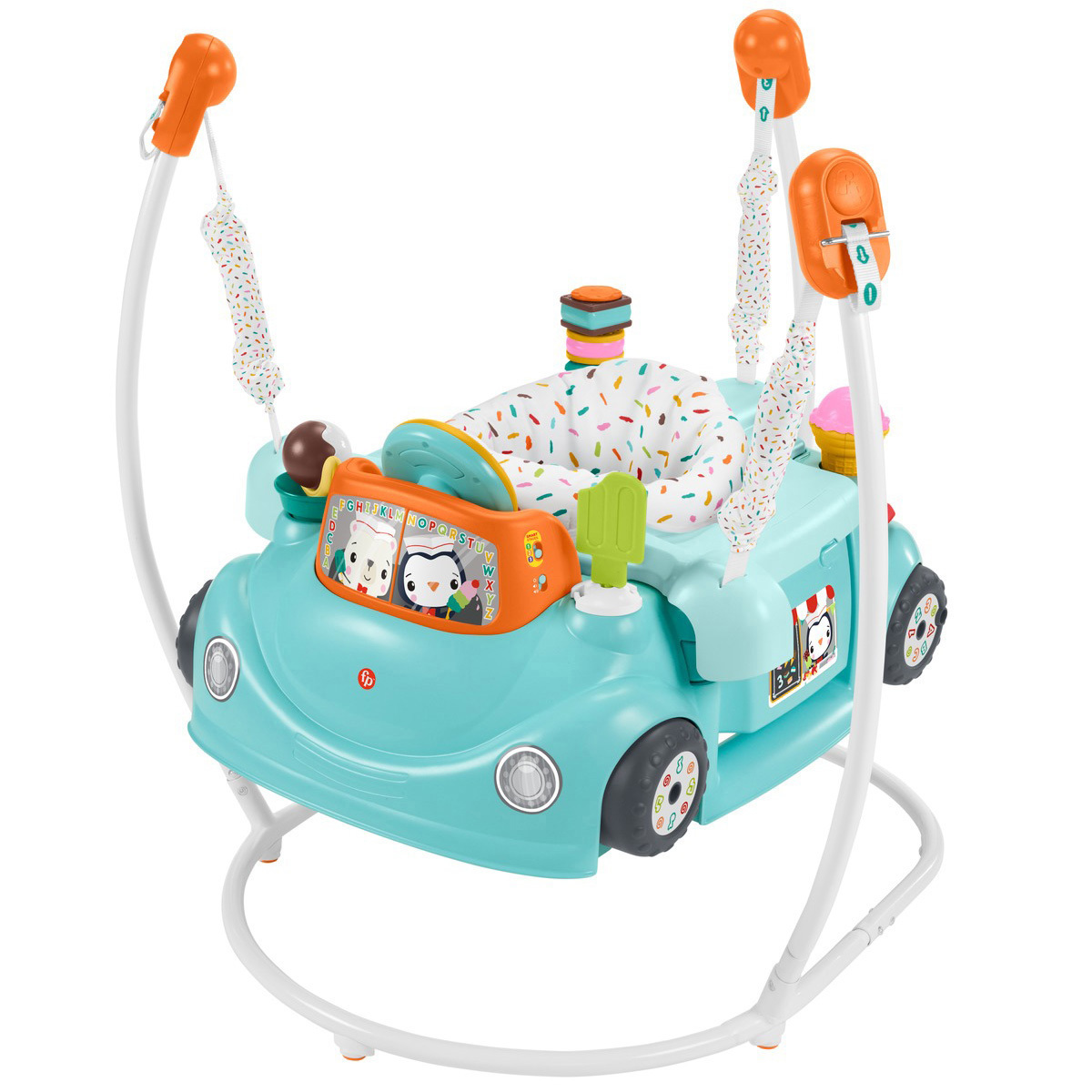 Your baby will have a double scoop of fun in the Fisher-Price 2-in-1 Sweet Ride Jumperoo.